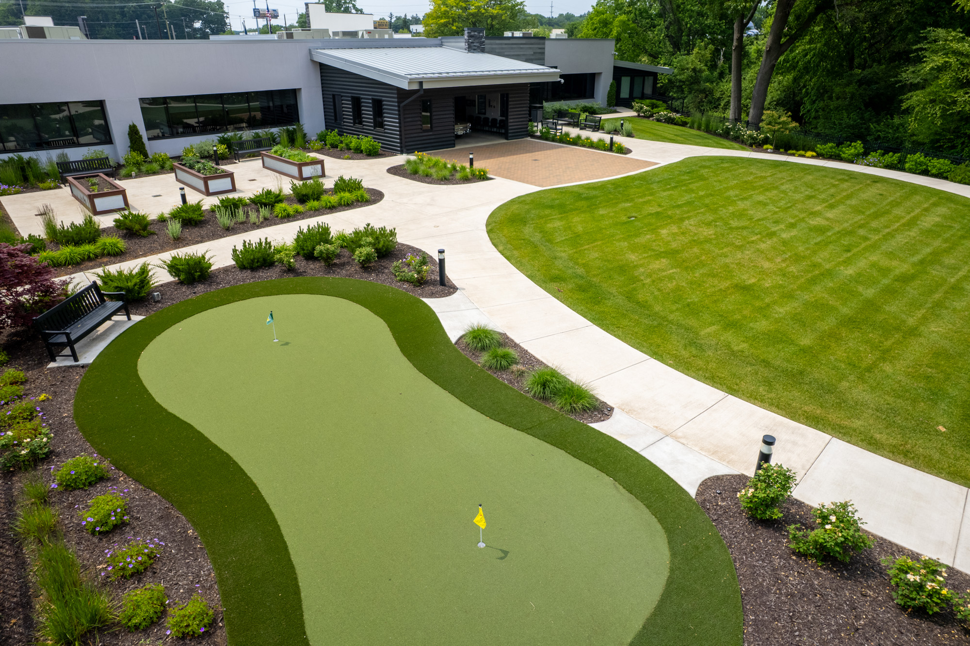 JPR’s design of the site’s exterior spaces focused on creating therapeutic and inclusive environments. Key features include raised garden beds, a putting green, a perimeter walking path, and a secluded gazebo — all carefully planned to encourage social interaction and outdoor engagement. Grading was optimized for accessibility, and thoughtful landscaping provides privacy and a calming buffer from nearby infrastructure, ensuring the site remains peaceful and inviting.